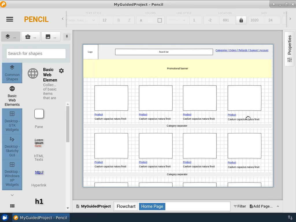 In this 2 hours long guided project you will learn how to create an e-commerce web UI wireframe using Pencil Project. You will create a user interaction and navigation flowchart, sketch re-usable items like header and navigation, group and arrange them into private collections, create home and product page, design dialogue and error messages, link the elements and finally export the prototype in an image, PDF or clickable interactive web format.