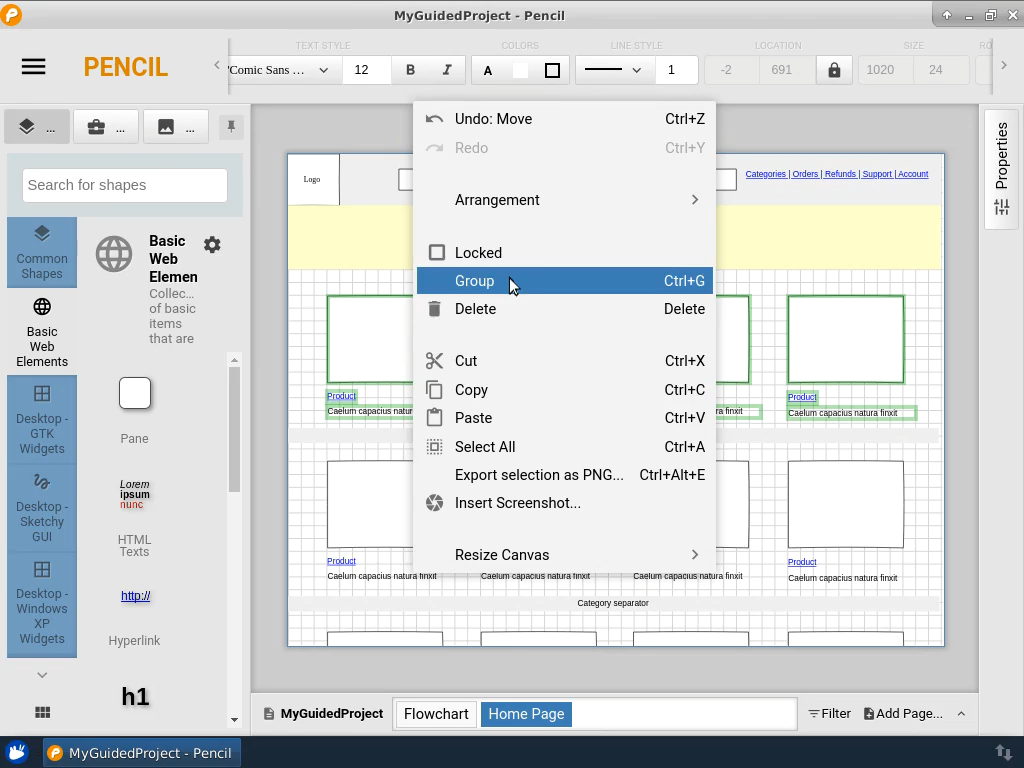 Create and export a wireframe using Pencil Project
