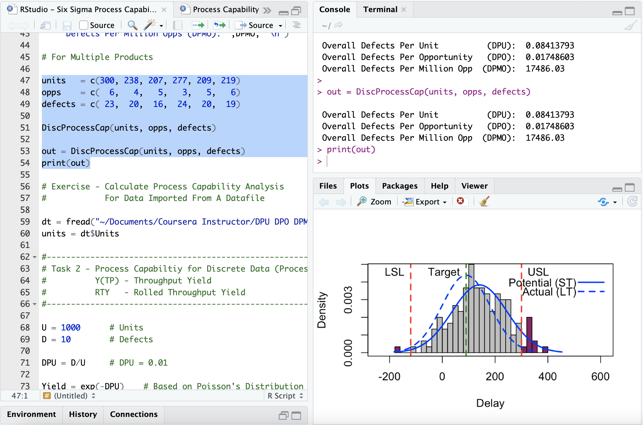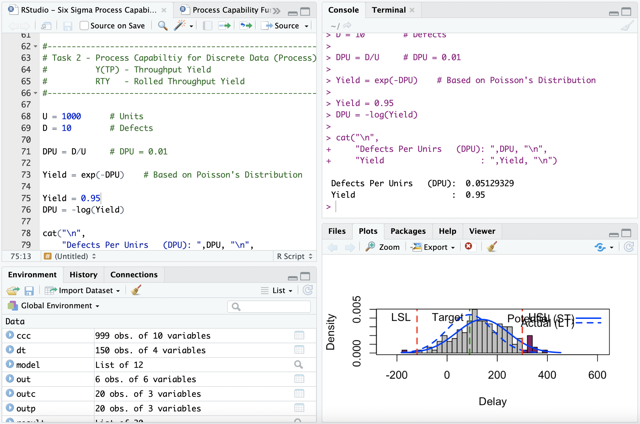 Use RStudio to calculate DPU, DPO, DPMO, Yield, Rolled Throughput Yield (RTY)