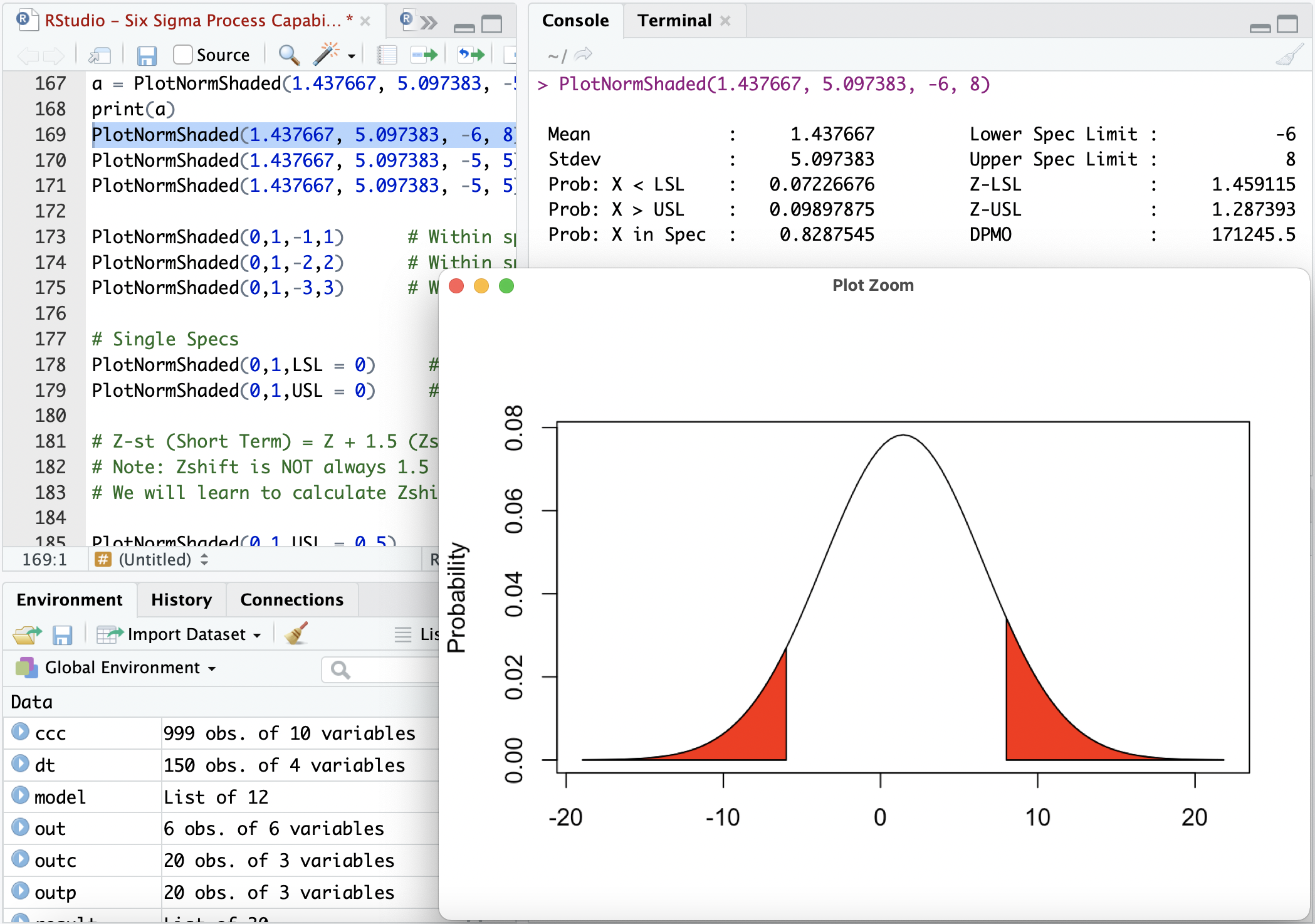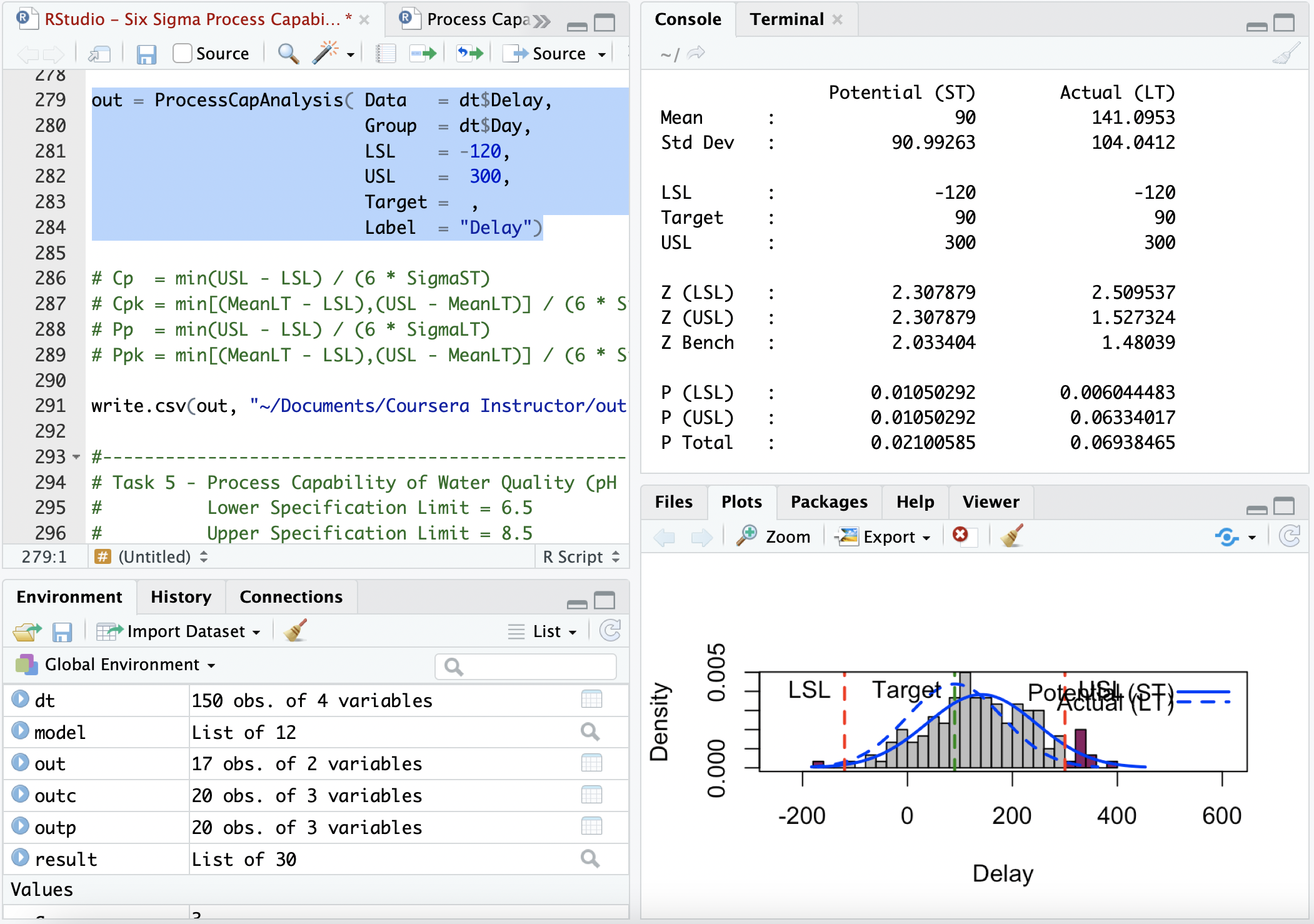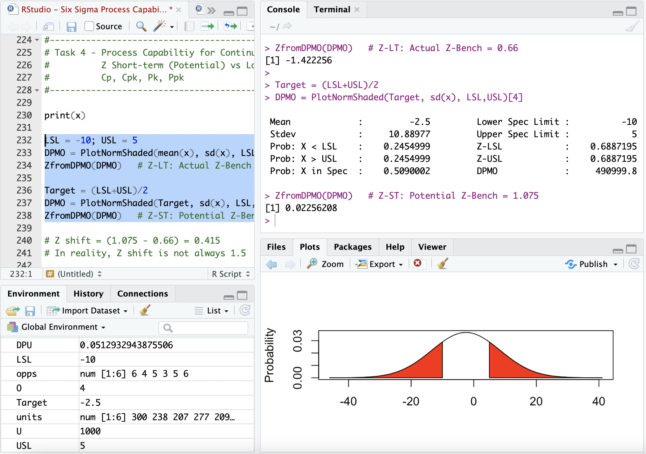 Use RStudio to calculate Short & Long Term Z Scores, Cp, Cpk, Pp and Ppk